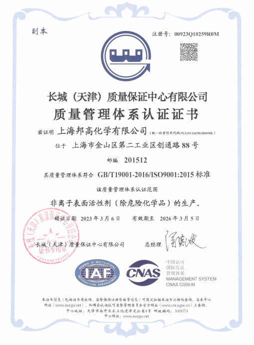 邦高ISO证书
